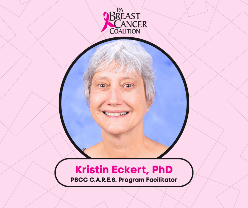 Dr. Kristin Eckert has focused much of her career on education and mentorship, teaching future generations about the importance of cancer research and oncology. As a researcher and professor at Penn State College of Medicine, she facilitated the PA Breast Cancer Coalition’s C.A.R.E.S. (Community, Advocacy, and Research Education for Students) program, offering high school students a glimpse into the lives of healthcare professionals. Dr. Eckert also invites the PBCC each year to a “Cancer in Real Life” dinner experience, partnering local survivors with medical students in the opens in a new windowPROMISE program to better understand patient-doctor relationships.