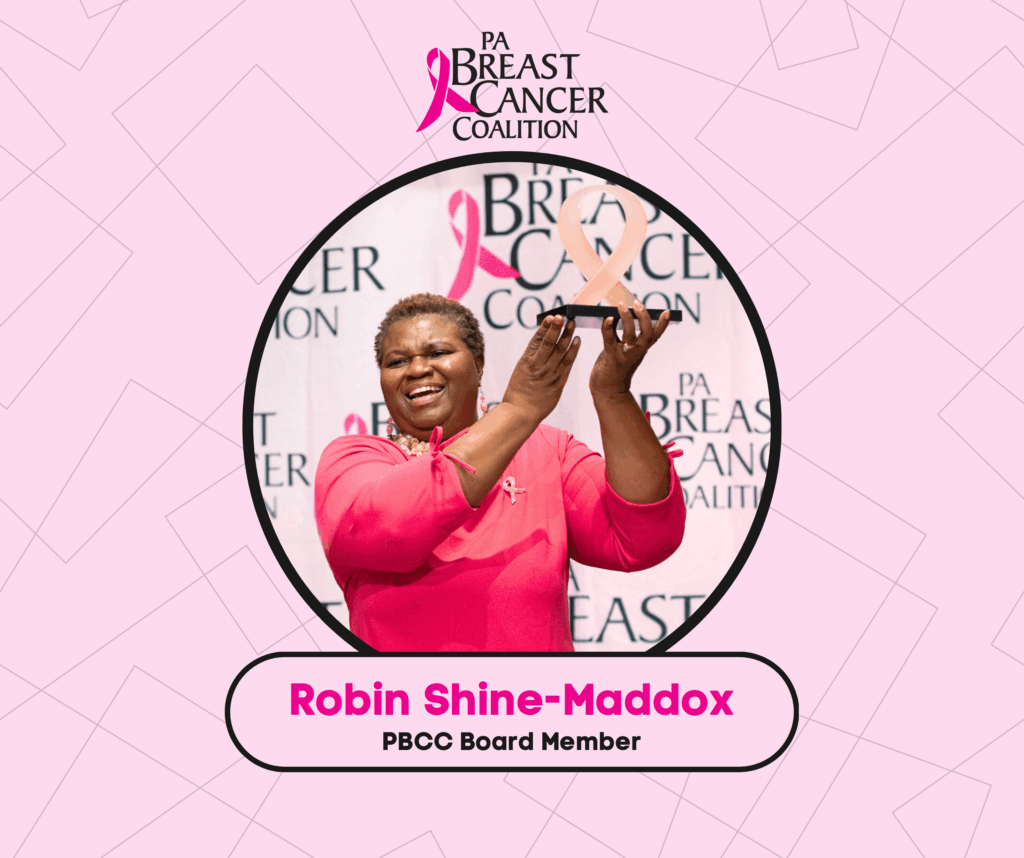 PBCC Board Member Robin Shine-Maddox is the Founder of opens in a new windowCelebrating Sisterhood and visionary of the She Shines Conference, which is dedicated to empowering, inspiring, and offering hope to women. As a breast cancer survivor, Robin works to spread awareness through legislative advocacy and educational outreach and is a previous PBCC Pink Ribbon Awardee.